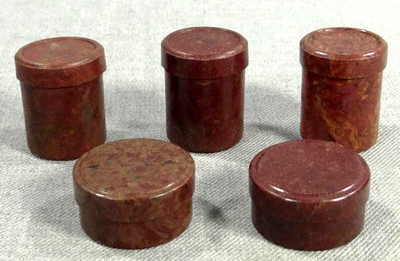 5 ANTIQUE ART DECO MARBLED BAKELITE MEDICAL OINTMENT VASELINE POT PILL BOXES LOT