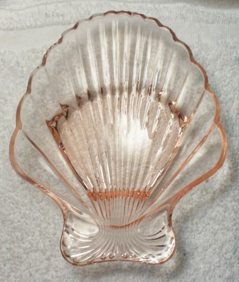 Title (ebay affiliate link): VINTAGE PINK DEPRESSION GLASS CLAM SHELL SERVING DISH