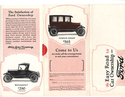 VINTAGE 1920? FORD MODEL T MAILER BROCHURE RARE VERY NICE RUNABOUT TOURING