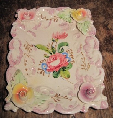 Title (ebay affiliate link): Vtg Hand Painted Italy Pin Dish Sm Rectangular Capodimonte Style Flower Corners