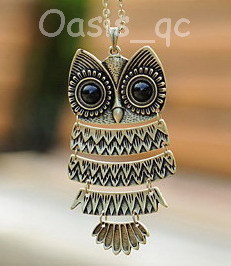 Bronze ANTIQUE STYLE CLASSIC OWL LONG NECKLACE
