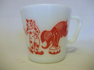 Title (ebay affiliate link): Vintage Pyrex Milk Glass Children's Cup - Red Circus Theme