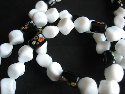 VINTAE MILK GLASS BEAD NECKLACE INTERESTING BEADS 27"