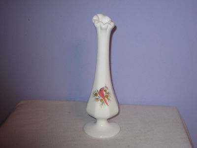 Title (ebay affiliate link): Vintage Fenton Signed Milk Glass W/ Hand Painted Red Cardinal Bird Vase