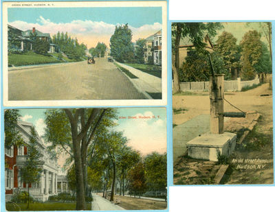 Three OLD postcard views of streets in Hudson NY