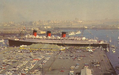Cunard Line's legendary QUEEN MARY of 1936 docking at Long Beach (Card # 5)