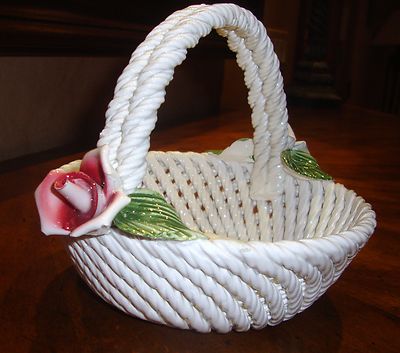 Title (ebay affiliate link): Vintage CAPODIMONTE Woven Basket with Roses. Beautiful and Nice for EASTER!