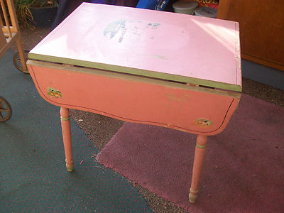 Title (ebay affiliate link): ANTIQUE CHILDS / DOLL WOOD DROP LEAF TABLE "SOUTH BEND TOY" PINK & GREEN VGC!