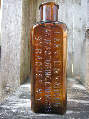 Title (ebay affiliate link): Larned & Barker Manufacturing Chemists Srracuse N.Y. - Old Amber Druggist Bottle