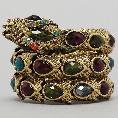 Title (ebay affiliate link): VINTAGE LOOK HAUTE COUTURE RUNWAY ANTIQUE GOLD COLORS JEWELRY SNAKE BRACELET
