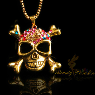 Title (ebay affiliate link): Brand new skull chains necklace crystal plated antique gold punk cool gift