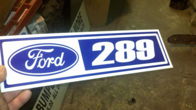 Ford 289 engine sign mustang fairlane torino ranchero 1969 1970 1971 1972 1973