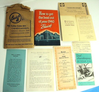 Title (ebay affiliate link): 1940 Buick 8 Owner's Manual with All Documents ID Card Service Warranty etc