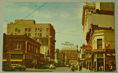 Title (ebay affiliate link): DOWNTOWN EL PASO, TEXAS HOTEL PASA DEL NORTE COCA COLA SIGN & JC PENNEY