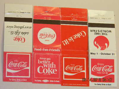 Title (ebay affiliate link): 4 different COCA COLA soft drink soda advertising matchbook cover LOT 8