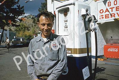 Original Slide, Standard Gas Station & Pump, Coca Cola Machine, c1950's