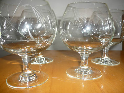 Vintage Crystal Glass 4 Brandy Glasses Ear design