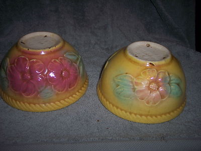 ANTIQUE - YELLOW WITH PINK FLOWERS - MIXING BOWLS - HULL ?