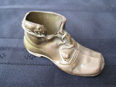 Vintage Antique Match Holder - Heavy Cast Brass Shoe w/ 2 mice(striker on back)