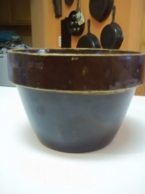 antique crock bowl Stoneware pottery crock brown late 1800's