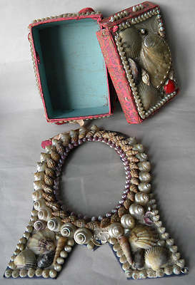 Title (ebay affiliate link): 2 pc Antique SHELL ART Photo FRAME & Tinket BOX Victorian Sailor's Valentine