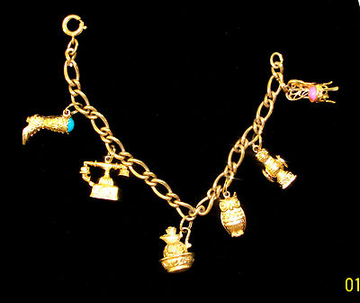 VINTAGE ESTATE JEWELRY AVON CLASSICS 1973 CHARM BRACELET 14K GE + 6 CHARMS IOB!!