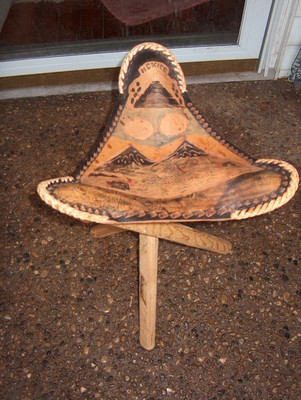 Title (ebay affiliate link): THREE LEGGED STOOL "FOLD UP REMOVABLE TOP" LEATHER TOP MEARKED MEXICO W/CARVINIG