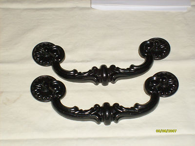 2 vintage large drawer pulls in black