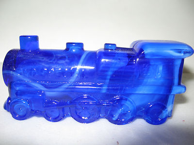 Title (ebay affiliate link): cobalt blue milk slag glass train engine railroad car candy container marble art