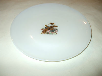 VTG FIRE KING GAME BIRDS RUFFED GROUSE ANCHOR HOCKING MILK GLASS DINNER PLATE 9"
