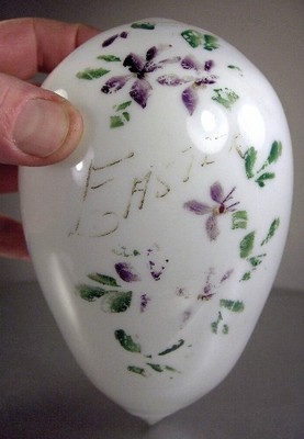 Vtg Milk Glass EASTER EGG Decorated Hand Very Large 6 3/4 Antique