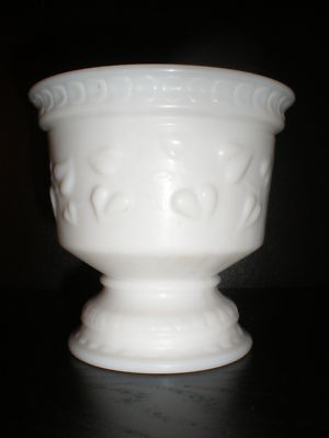 MILK GLASS FOOTED BOWL WITH HEART SHAPED FLOWER DESIGN