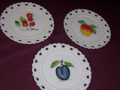 PAINTED MILKGLASS PLATES-SET OF THREE
