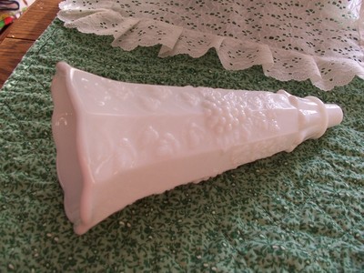 Westmoreland Paneled Grape Milk Glass Epergne Horn Tall Center Vase 8 1/2"
