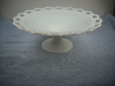 Milk Lace Glass - Vintage - Large Pedestal Serving Bowl / Plate / Platter