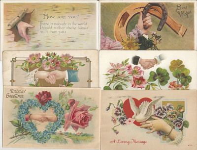 Lot of 6 Old Pretty Hands Pcrds-Wild Roses,Pansies,Roses,Clover-Forget-Me-Nots