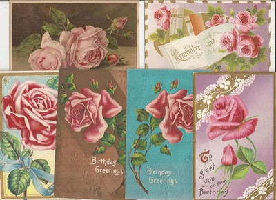 Lot of 6 Gorgeous Old Pink Roses Postcards