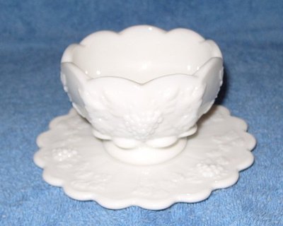 Title (ebay affiliate link): Vintage Westmoreland Paneled Grape Milk Glass Mayonaise/Cocktail Bowl & Saucer