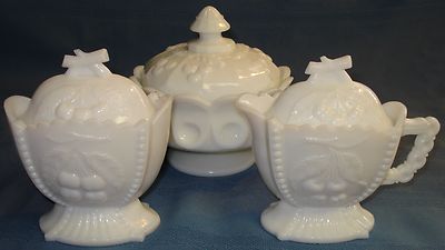 Title (ebay affiliate link): Westmoreland Milk Glass Cherry Set Cream Sugar & Candy Dish Vtg Lot Collection