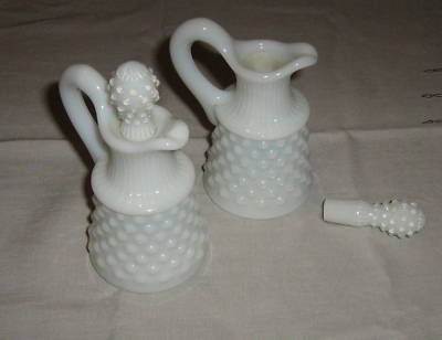 *2 White Milk Glass Fenton Hobnail Oil Cruets Vintage*