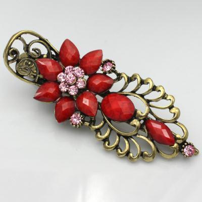 Fascinating antique bronze Red rhinestone crystal Flower hairpin AC0220