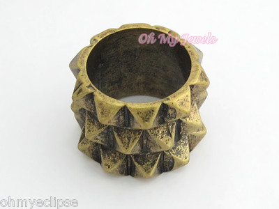 Title (ebay affiliate link): COOL ANTIQUE FINISH RETRO BRONZE SPIKE PYRAMID STUDDED PUNK BAND RING RG564 sz9