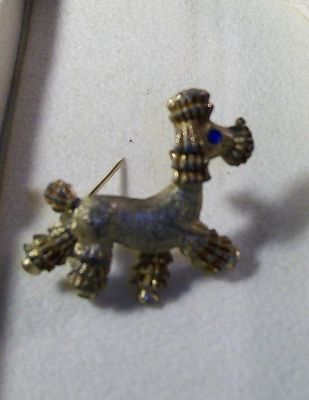 Antique Goldtone poodle pin with blue crystal eye