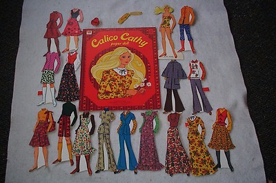 Title (ebay affiliate link): Vintage Calico Cathy Paper Doll 1976 with 16 items of Clothing and Cover Book