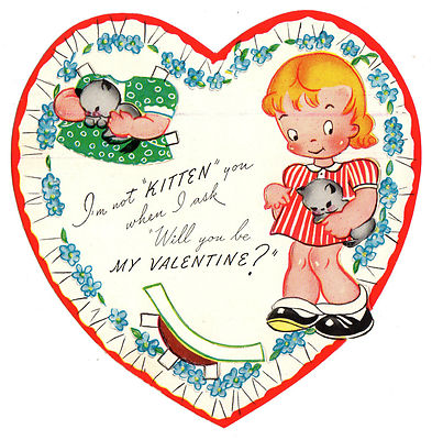 Title (ebay affiliate link): VINTAGE UNUSED PAPER DOLL VALENTINE GIRL WITH PET KITTY CAT / OLD GREETING CARD