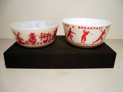 2 - 1950's Milk Glass Childrens Cereal Bowls