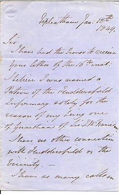 1849 Original Letter - Lord Zetland -Huddersfield & Agbrigg Infirmary, Yorkshire