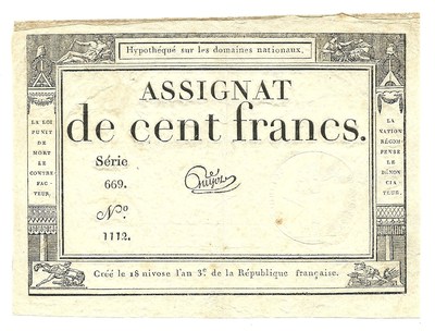 Title (ebay affiliate link): Orig. 1795 French Revolution ASSIGNAT 100 Francs 1795 aUNC