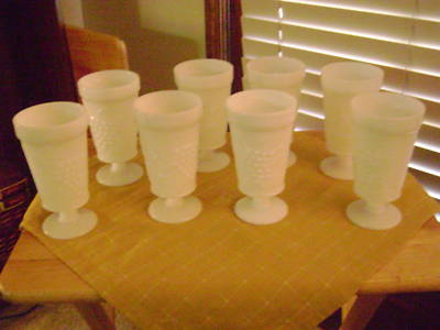 8 Old White Milk Glass Grapevine Tumblers w/Pedestal