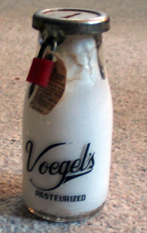 Voegel's Glass Milk Bottle Bank Lock Key Original Tag